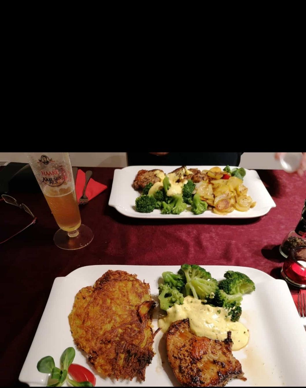 Man schmeckt die Zutaten, daß Rindfleisch schmeckt nach frischen Rind, daß Gemüse war auf'n Punkt genau gegart, noch knackig aber nich überkocht, die Bratkartoffeln waren kross aber nich angebrannt, es wurden frische Zwiebeln eingebracht, also man schmeckt eine ehrliche Küche! 😊