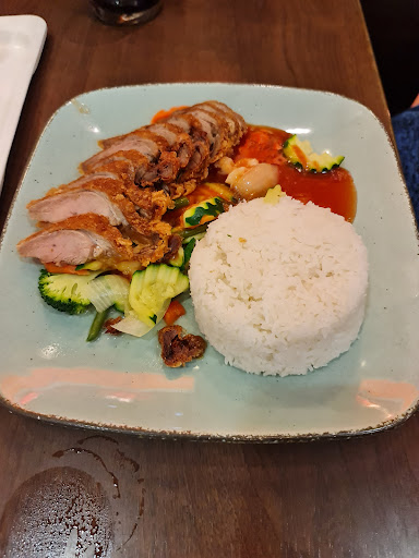 Read moreDer Name des Restaurants hat wenig mit dem zu tun, was der Kunde zum Essen bekommt. Es handelt sich um absolute Industrieware, die in Palmöl mit viel Salz zubereitet ist. Gebratene Nudeln mit Huhn und wahlweiser Soße besteht aus seit längerer Zeit warm gelagerten Nudel im Warmhaltebereich. Das gering vorhandene Gemüse besteht aus Zwiebeln. Die Soße ist eine Zubereitung aus Geschmacksstoff, Farbstoff und Verdickungsstoff. Das Hühnerfleisch ist weiss, ohne jeden Geschmack und sehr hart. Mit asiatischer Küche für einen Gast, der bereits Asien bereist hat und die Küche kennt, hat das was dieser Imbiss macht, nichts zu tun. Interesante Blicke eröffnen sich bei der Geschirrrückgabe. Volle Teller in allen Rückgabebereichen. Ich kann diesen Imbiss niemals...