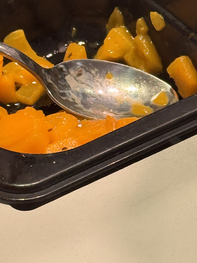 Alle drei wurden in einem Mixer gemacht, was ich nicht schlimm finde. Aber leider wurden die entsprechenden Becher mit dem kleinsten beginnend gefüllt was dazu führte, dass mein Becher nur knapp über halb voll wurde. Er wurde mit Apfelsaft aufgefüllt.... Die eh schon dünnflüssige Konsistenz wurde nun also zu einem Apfelsaftmischgetränk. Von einem Smoothi, für den am Spuckschutz Löffel angeboten wurden, war mein Mischgetränk Lichtjahre entfernt.