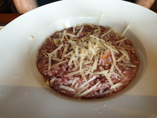 It's a very nice atmosphere, reminds me a lot of Tuscany. They have various selections of red wines. We got a starter and pasta each. Will not recommend to do so unless you are very hungry. It's German portion a.k.a big portion. Definitely can't do primi secondi like in Italy. Personally I'd prefer to have a smaller portion with less price. I asked them when paying at the end and he said they can do half portion for 1.5⏠less, which I think is too expensive. The food was delicious, however it didn't really have that simplicity in flavour and freshness like in Italy. The waitress was not so friendly, only friendly to regular...