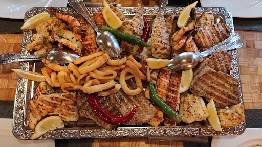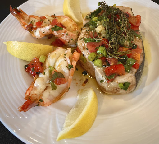 Bevor man in die Karte schaut, sollte man immer nach Tagesgerichten fragen! Heute hatte ich ein äußerst leckeres Schwertfischfilet mit Gambas vom Grill (s. Foto), dazu Grillgemüse und Spaghetti.