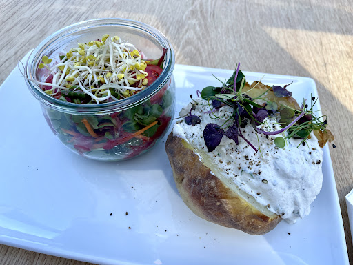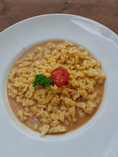 Vorab, wer Fleisch mag ist hier falsch. Wer auf eine umfangreiche Speisekarte Wert legt ebenfalls. Es gibt eine überschaubare Anzahl an vegetarischen Gerichten. Spätzle, zwei verschiedene Knödel-Gerichte und zwei Kindergerichte, sowie ein Tagesgericht (in unserem Fall meist Ofenkartoffel mit Salat-Beilage). Die wenigen Gerichte sind aber geschmacklich sehr lecker und auch optisch sehr gut angerichtet. Hinterher kann man sich noch etwas Süßes in Form von Kuchen, Eis oder Apfelstrudel gönnen. Preislich kommt man mit Getränken (Schorle), drei Hauptgerichten und einer Portion Pommes auf ca. EUR 45,00, was völlig in Ordnung geht. Das Personal ist sehr freundlich. Durch den Kletterwald und See auch super gelegen, um so einen schönen Urlaubstag...