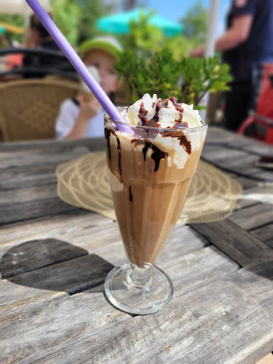 Ein Wochenende später versuchten wir es noch einmal. Es waren zu dem Zeitpunkt nur eine Handvoll Gäste auf der Terrasse und wir die einzigen Gäste am Bestellschalter. Als wir drei Überraschungsbecher, einen Eiskaffee sowie einen schokobecher für insgesamt 28,50€ bestellt haben und es diesmal auch Becher gab, waren wir erst einmal voller Vorfreude. Diese verflog allerdings auch schnell wieder. Es gab keinen schokolikör für den schokobecher. Die für die Überraschungsbecher bestellten Kugeln erdbeereis wurden einfach weggelassen. Diese wurden nur mit Vanilleeis gefertigt. Das wiederum schmeckt extrem künstlich und die Kids haben es direkt bemängelt. Der Schokobecher war lieblos gestaltet. Schokoeis, Sahne und schokosoße. Der versprochene Likör wurde vergessen. Keine weitere Deko, nichts. Traurig. Das Personal schien selbst an einen solch ruhigen Tag überfordert. Das geht definitiv besser.