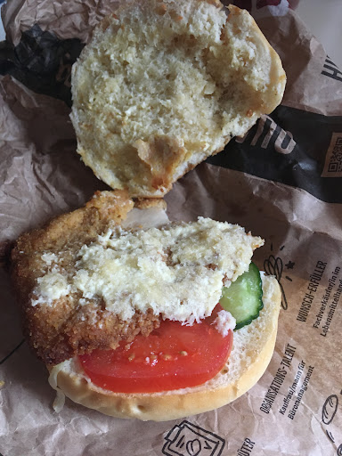 Konkreter? Ich glaube das Bild sagt alles.. ich finde es eine Frechheit, dass man für so einen Ranz fast 6 € nimmt! Keinerlei Salat, nichtmal etwas Soße, nur je eine dünne Scheibe Tomate und Gurke und das Schnitzel ist auch nicht der Hit! Da fragt man sich , was diesen hohen Preis rechtfertigt.. Für mich ist das reinste Abzocke! Lange und Goeken haben leider nichts mehr vom „Bäcker von Nebenan“ und sollten einfach nur...