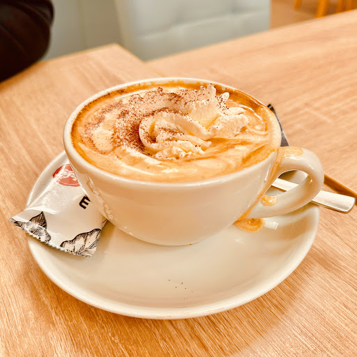 Den hat die Dame auch zubereitet, wobei sie keinen frischen Matcha anrührte, sondern eine fertige Mischung drüber goss. Mir wurde gesagt, dass ich einen Rabatt von 20% kriegen könnte hätte ich nicht mit Karte bezahlt. Andernfalls hätte ich auch ein Stück Tiramisu bekommen können. Ich lehnte es ab mit den Worten: „Der hat mich auch nicht überzeugt.“ (Die Löffelbiskuits sind viel zu nass und schmecken matschig)