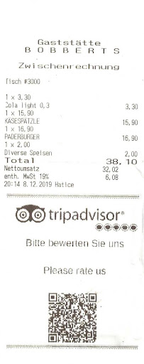 UNVERSCHÄMTER SERVICE !!! Ich war am 04.08 dort essen. Das Essen war ziemlich gut, die dunkelhaarige Bedienung übertrieben freundlich, was sehr künstlich wirkte. Gleich als wir ankamen fragten wir ob wir mit Karte bezahlen könnten, da wir absolut kein Bargeld bei uns hatten. Diese "amerikanisch" freudliche Bedienung versicherte uns, dass wir : " selbstverständlich mit Karte zahlen " könnten. Da wir draußen saßen, fragte ich ob ich ins Restaurant gehen solle um zu bezahlen, was verneint wurde. Sie brachte das Gerät an den Tisch und..... es funktionierte nicht. Da fing der ganze Ärger eigentlich erst an. Sie probierte und probierte und sagte schließlich zu mir : es läge an meiner Karte. FRECHHEIT ! Dann ging ich doch mit Ihr und dem Gerät ins Restaurant und es funktionierte trotzdem nicht ! Daraufhin sagte sie : "Sie haben viellleicht nicht genug Geld auf Ihrem Konto" - eine UNVERSCHÄMTHEIT !!! Die Rechnung betrug 42 Euro. Schließlich verschwand diese Service-Person und als sie wiederkam meinte sie ich solle meinen Personalausweis da lassen und zur Bank gehen. Ich erklärte ihr, dass ich mich in Paderborn nicht auskenne und fragte wo ich eine Deutsche Bank - Filiale finde. Sie sagte nur "googeln Sie". Ich habe keine in der Nähe gefunden und fragte mich dann zu einer Commerzbank-Filiale durch. Die Innenstadt war absolut mit Menschenmengen überflutet, da es der letzte Tag des Libori-Festes war. Als ich mit Bargeld wieder im Restaurant ankam, die Rechnung mit einem 50 Euro-Schein bezahlte, steckte diese dreiste Person den 50 Euro-Schein ins Portemonnaie und lief weg. Ich lief hinterher und wies sie darauf hin, dass ich den Rest gern wieder hätte und soviel Trinkgeld gebe wie ICH es für nötig hielt. Daraufhin gab sie mir die 8 Euro wieder und ich gab ihr trotz allem noch 2 Euro Trinkgeld. Den Personalausweis gab sie mir allerdings nicht wieder, ich solle warten. Da ich allerdings bei dem ganzen Trubel Freunde von mir aus den Augen verlor, fuhr ich weg und rief um ca. 23.00 das Restaurant an und bat mir den Ausweis nach Hause nach Berlin zu schicken. Man versicherte mir das sein kein Problem und gleich am nächsten Tag würde man den Ausweis nach Berlin schicken ! DER PERSONALAUSWEIS IST BIS HEUTE NICHT WIEDER AUFGETAUCHT ! Ich rief mittlerweile 3 mal im Bobberts an und jedes Mal versicherte man mir der Ausweis würde mir per Einschreiben zugeschickt werden ! ICH WERDE DAS NUN...