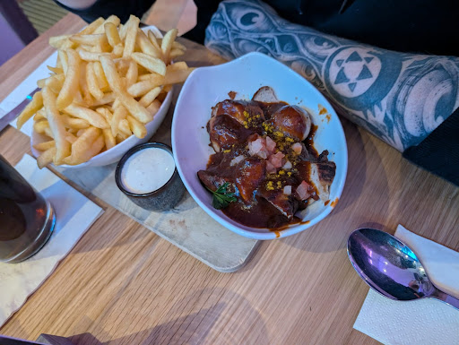 Read moreDie erste Enttäuschung haben wir abgetan als "ja, kann ja mal passieren". Aber bei zwei Besuchen, zweimal enttäuscht zu werden, ist dann doch zu viel. Alle Tische draußen waren besetzt, bis auf einen Stehtisch, der in der prallen Sonne stand (bei 35 Grad). Bei der Nachfrage, ob wir den Stehtisch etwas mehr in den Schatten rücken dürften (innerhalb deren Bereich, 1 m, wenn es hochkommt), wurde man unhöflich abgefertigt und zusätzlich wurde einem zu verstehen gegeben, dass man unerwünscht ist und dass unser Wunsch im Schatten zu sitzen, total überzogen ist. Beim zweiten Mal, durfte man 20 Minuten vor Küchenschluss nur noch, mit sehr viel Wohlwollen, Currywurst Pommes bestellen, obwohl die Küche bis 22 Uhr geöffnet hatte. Als absolute Krönung musste, trotz gleichzeitig aufgegebener Bestellung, eine Person 20 Minuten länger auf das Essen warten.