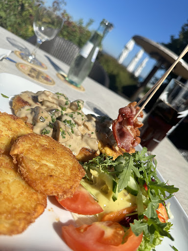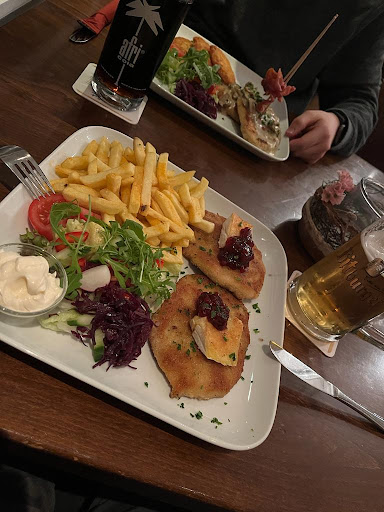 Nachdem wir unsere GetrĂ€nke bestellt hatten entschieden wir uns fĂŒr unser Essen. Dieses wurde von einer anderen, etwas Ă€lteren Kellnerin entgegengenommen, die sehr demotiviert und unhöflich erschien. Ich entschied mich fĂŒr den Wolke 7 Spezialsalat und meine Frau nahm den Airbus, ein Schnitzel mit Pommes und Salatbeilage.
