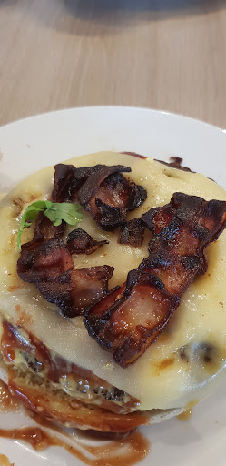 Eins vorne weg, ich hab schon lange nicht mehr so schlecht gegessen, der einzige Vorteil ist, es war billig 5€. Ein Burger lieblos zusammen gesetzt der zusätzlich im Ketchup ertrank, nie habe ich in meinem Leben Hotdog Sauce mit gerösteten Zwiebeln auf einen Burger essen müssen. Absolut grauenhafte lieblos, geschmacklose Zusammenstellung des Essens alles TK Ware meiner Meinung, die Burger Brötchen nicht mal ein wenig angeröstet das war eine glatte 5, Das ganze Trauerspiel hat auch noch 20 Minuten gedauert bis es fertig war ich, wenn ich könnte würde ich null...