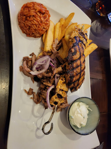 Lage/Ambiente: Note 3+ Das Restaurant liegt Zentral und das Kino ist zu Fuß zu erreichen, Parkmöglichkeiten sind ausreichend vorhanden. Leider betritt man das Restaurant unweigerlich durch den Raucherbereich der sehr gut besucht ist. Ein Beleuchtetes Hinweisschild an der zufahrt wäre ebenfalls hilfreich. Im Restaurant war es sehr Laut hier sollte man durch ein paar Akustische Kniffe die Schallausbreitung etwas eindämmen. Das Interieur ist Typisch griechisches Restaurant aber nicht zu Kitschig wie man es leider zu oft sieht Service: 2+ Wir wurden sehr Freundlich begrüßt man hat uns zu unserem Platz gebracht und gefragt ob man unsere Jacken abnehmen kann. Sehr zügig haben wir die Karte bekommen und gleich was zu Trinken bestellt das nicht lange auf sich warten ließ. Als wir unsere Speisen ausgesucht haben reichte ein kurzer Blickkontakt zur Bedienung und diese hat sofort unsere Bestellungen aufgenommen, auch die Vorspeise und die Hauptspeisen ließen nicht lange auf sich warten und kamen in sehr angenehmen abständen. Leere Gläser wurden sofort bemerkt und es wurde 1 mal nachgefragt ob alles in Ordnung sei Essen: 1- Die Vorspeise (Haloumi) war sehr lecker und Frisch zubereitet so muss ein Haloumi schmecken. Die Hauptspeise war ebenfalls sehr lecker das Fleisch war auf den Punkt einzig die Pommes waren etwas zu Fettig man sollte lieber auf normale Streifenpommes wechseln und der Zaziki war etwas zu Knoblauchlastig. Fazit: Ich würde und werde jederzeit wieder...
