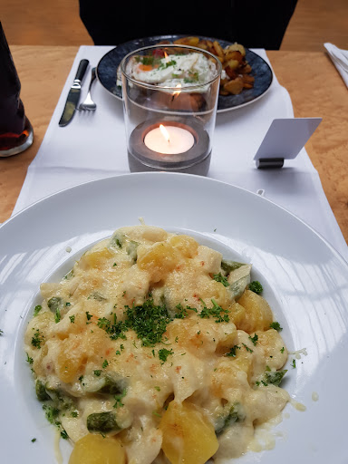 Wartezeit vom Eintreffen am reservierten Tisch bis zum Servieren des Hauptgangs (teilweise im Verlauf des späteren Abends dann storniert) 2 Stunden 15 Minuten (sic!), davon 1 Stunde und 45 Minuten ab Bestellung. Eine Menükarte für die Bestellung erhielt man zuvor auch nur auf Nachfrage. Alle Gerichte entstammten der Saisonkarte und waren gastronomische Standards, es gab keinen Hinweis auf eine etwa zu erwartende längere Wartezeit. Dazu kam das gefühlt endlose Warten auf das Essen für 2 kleinere Kinder: Insgesamt 1 Stunde 20 Minuten - nein, die zwei hatten wahrlich nichts Kompliziertes bestellt. Immerhin gab es eine nette Spielecke, die ich uneingeschränkt empfehlen kann.