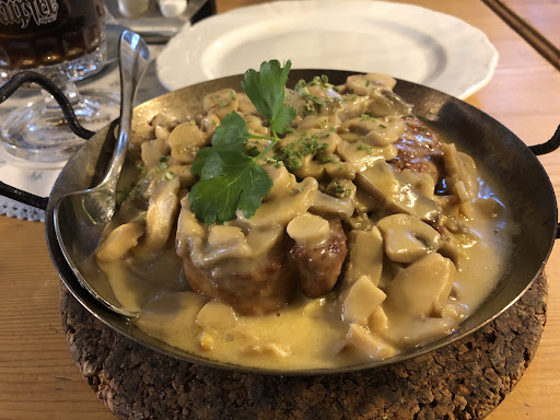 There are menus in German and menus in English (I don’t know how to tell the difference while looking at it). I had the Won Ton soup as an appetizer and the #421 Parsberger Burgpfand’l Pork Fillet with Kasespatzle and mushrooms. I have found my new favorite meal. They also have Winkler Brau beer.