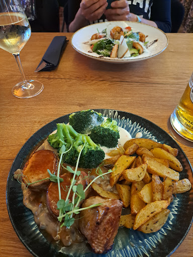 Wollte mit einer guten Freundin aus Berlin die in der Nähe war mal Essen gehen. So eine gute Wertung für diese Küche? Waren die Gäste vorher alle Betrunken oder hatten die alle was anderes zu Essen? Das Ambiente hat mir gut Gefallen Hell und Warm aber mit Amercanische Küche was die Breite der Speisen zeigt hat es nicht viel zu tun. Service war nett aber haben viel nicht verstanden als ich sagte Warum ich das Essen nicht gut fande. Das Essen selbst hat gut Ausgesehen. Anfangs dachte ich auch Preisleistung ok aber dann ging es mit Essen los. Filet sollte eigentlich Zahrt sein warren auch eher Medalions als Filets und haben sogar etwas nach Kassler geschmeckt. Die Champinons das Schmeckt man als Koch sind aus der Dose oder dem Glas mit Sahnesoße Broccoli etwas mehr als Blamchiert wenn nicht Schon Gekocht. Bissfest ist anders. Die Sauce Hollondaise war zu erwarten aus den Tetrapack schmeckte auch etwas nach Vanille vielleicht Vegane Sauce Hollondaise?! Die Krönung waren allerdings die Rosmarinkartoffeln. Das waren einfache Kartoffelecken aus der Gefriertruhe in die Friteuse gehauen und da dann Rosmarin und Salz dran gemacht. Meine Begleitung hatte zu ihren Salat nicht mal ein Stück Brot bekommen. Für diese hohen Preise hätte ich Frische Küche erwartet. Wenn ich solche Speisen bei unseren Gästen im Restaurant anbiete für diesen Preis und ich Arbeite und Wohne auf Usedom wo diese Preise schon fast normal sind, biete ich Frische an aber nicht Dosen und Tüten Essen was man nur Warm macht. Mit Kochen hat das nichts zu tun. Da hat der Koch den Beruf absolut verfehlt. Nur mal als Beispiel. Wenn der Inhaber das so beibehalten möchte würde ich als Personal Druck machen. Als Koch möchte man doch Kochen und nicht Aufwärmen. Preislich dafü eine Frechheit. Schade das ich nicht in der Nähe Wohne sonst würde ich den Koch nochmal Schulen wie man das Essen richtig macht. Auch hat Fich und Suppen mit Amercanischen Restaurants nicht viel zu tun als kleinen...