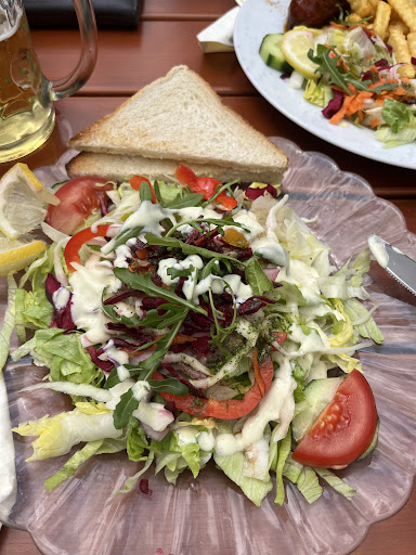 Bei meiner Begleitung war mehr Salat als Currywurst auf dem Teller. Die Pommes waren lecker, die Currywurst geschmacklich auch okay, allerdings war die "Soße" zusammengepanschtes Curry Ketchup. Und von der "Soße" gab es auch so gut wie nichts.
