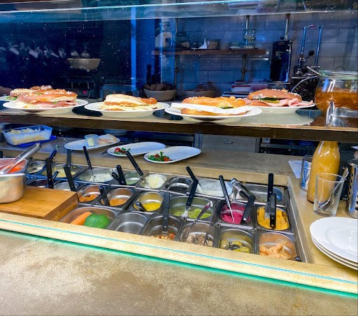 Besonders zu empfehlen sind die belegten Brote. Klingt zwar sehr mickrig, "belegte Brote", die sind aber wirklich sehr großzügig und mit besonderen Sachen belegt, Couscous, Schinken, Tomaten, Spiegelei, alles bestens und lecker. Die Portionen sind ausreichend für ein gutes Frühstück oder auch ein Mittagessen. Generell sind die Preise hoch, man bekommt aber auch viel dafür, das Preis/Leistungsverhältnis ist gerade noch gut. Den Aufpreis von 0,40€ für lactosefreie Milch im Kaffee finde ich viel zu hoch.