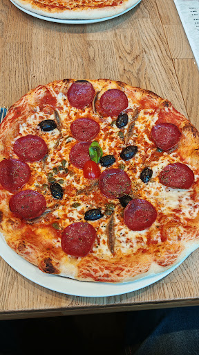 Read moreUscendo dalla stazione ferroviaria abbiamo trovato questo locale piccolo ed accogliente con saletta al piano superiore altrettanto accogliente. Menù composto da pizze e primi piatti. Prendiamo una pizza margherita, un piatto di lasagne ed un piatto di tortellini con ricotta e spinaci con sugo bolognese. Pizza, finalmente, con impasto soffice e non a soletta di scarpe (hanno pure delle pizzette piccole dall' aspetto buone). Nelle lasagne sono stati messi peperoni e zucchine che non ci si aspetta, ma nell' insieme risultate buone. I tortellini, fatti direttamente da loro, molto buoni e porzione abbondante. Come dessert abbiamo preso il tiramisù portato nel bicchiere, morbido e gustoso fatto con gli amaretti (strano da trovare in questo dolce, ma, devo dire che l' ho trovato molto buono). Lo chef indossa una divisa con i colori dell' Italia ed il cameriere, molto gentile, alla fine del pranzo ci ha offerto due latte e cacao. Infine, il caffè espresso, degno del suo nome...molto buono, cosa non facile da trovare da...
