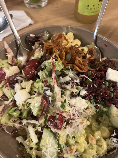 Die Spätzle sind ok, aber wirklich nichts krasses. Irgendwie fehlte überall Würze und vor allem Salz. Bei den Bergkäse Spätzle fehlte vor allem Käse. Ich hatte die Bowl und wenn man alle Sorten zusammen mischt, dann hat es trotzdem noch gleich geschmeckt - also quasi nach nichts. Die Einrichtung wirkt zwar gemütlich, aber ist leider etwas unpraktisch, weil alles sehr zugestellt ist. Wir hatten vorher reserviert, da wir ein paar mehr Leute waren und bereits am Telefon eine Portion glutenfreie Spätzle vorbestellt. Als wir ankamen hieß es auf einmal, dass es keine glutenfreien Spätzle mehr gibt. Als wir dann den Rest der Bestellung stornieren wollten, um woanders unser Glück zu versuchen, gab es auf einmal doch noch eine Portion. Generell war der Service an diesen Abend eine Katastrophe. Wir haben alle unser Essen so extrem zeitversetzt bekommen. Erst wurden zwei Gerichte gebracht, 20min die nächsten vier und das letzte wurde komplett vergessen und wurde dann erst auf Nachfrage gebracht. Aber währenddessen wurden mehrere Bestellungen für To Go rausgegeben und die Gäste vor Ort ließ man warten. Einige Gerichte waren an dem Abend auch schon ausverkauft, aber für die Bowls konnte man dann auch andere Sorten als Ersatz wählen. Bei zwei von vier Tellern hat das dann auch geklappt. Wahrscheinlich war der Ersatz dann auch ausgegangen. Aber am Ende waren wir einfach froh, dass wir überhaupt noch was bekommen haben. Ich verstehe, dass es Abende gibt, die sind stressig und vielleicht war das Team auch unterbesetzt. Aber als Servicekraft muss man das dann eben dementsprechend auch auffangen. Es wurde sich kein einziges Mal bei uns entschuldigt für die ganzen Pannen, es wurde dann auch nicht mehr kommuniziert, dass in der Zubereitungszeit doch noch andere Sachen ausgegangen waren. Man hätte auch eine Entschädigung anbieten können (vor allem wenn man den stolzen Preis von fast 19€ für eine Spätzle Bowl beachtet). Alles in allem eine sehr...