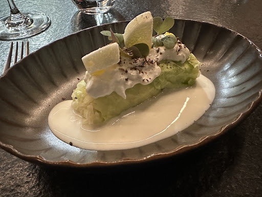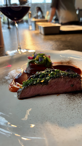 Besonders faszinierend: Die Aromenkombinationen überraschen, ohne zu überfordern. Kirsch-Noten treffen auf Zander und fein geschnittenes Shiso, später eine grüne Soße zum butterzarten Beef, die einen mitnimmt wie eine Erinnerung an den ersten Frühlingstag. Es sind keine Kontraste um ihrer selbst willen – es ist eine Handschrift. Und sie ist klar.
