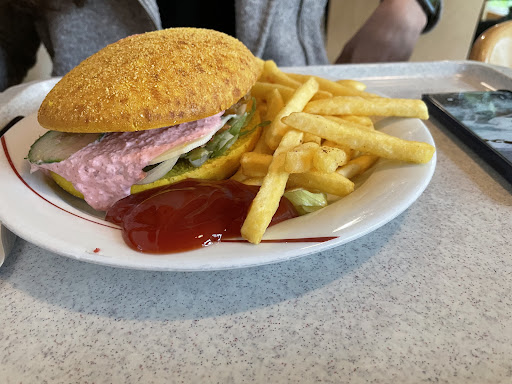 Oversalted food, not spiced at all. There’s only ketchup for 50 cents, salt, and pepper. There’s no possibility to choose what you want in your salad and usually, vegetables are dry because they stayed too long. No possibility to fill the cup/bottle with water, for this you need to go to the toilet. There are 3-4 options for sodas. They cannot cook vegan and vegetarian food. The only good thing that you can find here is bavarian food for a decent price. Everything else is not...