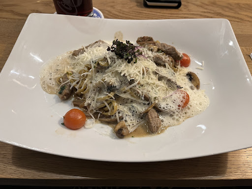 Waren zu zweit da und kamen etwa 15 Minuten vor der reservierten Zeit an. Bekamen aber gleich unseren Tisch. Das Lokal hat ein schlichtes, aber modern stylisches Ambiente, was uns gleich gut gefiel und wir sehr angenehm empfanden. Die Bedienung(en) waren freundlich, bemüht und sehr flott. Wobei es sich wahrscheinlich um Studenten handelt, da alles ein wenig unbeholfen und etwas unsicher wirkte. Als Vorspeise hatte meine Freundin die überbackene Aubergine und ich die marokkanische Tomatensuppe. Leider war in meiner Suppe ein schwarzes Haar. Ich habe es gemeldet und bekam gleich eine neue. Ob es tatsächlich eine neue war oder nur herausgefischt wurde, kann ich nicht sagen aber es ist zumindest für mich kein Riesenproblem. Als Hauptgericht bestellten wir beide Tagliolini mit Pilzen. Das Essen war hervorragend! Sowohl die Vorspeise als auch das Hauptgericht schmeckten uns beiden sehr. Die Qualität war auch sehr gut, von da her war der doch sehr hohe Preis für die Nudeln (12,90 €) noch ok. Mit einer großen Flasche Wasser, einem Glas Weißwein und noch einem kleinen Brotkorb hätten wir eigentlich 53 € gezahlt. Da wir einen Schlemmerblock hatten (ein Hauptgericht gratis) waren es 40€. Was man oft noch dazu sagen muss ist, dass es keine Probleme gab und der Gutschein auch am Samstag und mit Reservierung gleich akzeptiert wurde. Wir werden aber wohl nicht mehr kommen, da die Speisekarte nicht mehr für uns Vegetarier hergibt und es ohne Gutschein...