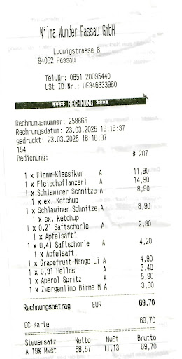 So, if you're looking for a place to savor delicious food, warm service, and an unforgettable experience in the heart of Passau, Wilma Wunder is the spot for you. And don't forget to order the tarte...