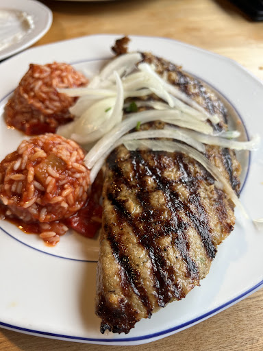 Nach dem Ankommen und Begrüßung folgt unsere Frage nach einem Tisch für zwei Personen. Antwort „draußen ist frei, guckt mal selbst.“ okay machen wir dann. Es hätte aber auch heißen können „hey klar folgt mir ich hab was für euch“. Nun gut, wir suchen uns also selbst einen Tisch in dem insgesamt sehr lieblos gestalteten Biergarten. Die Auflagen recht abgeranzt und alles recht rustikal, das kann man mögen oder nicht, ich erwähne es mal halbwegs neutral. Nach Erhalt der Karte folgt nicht gleich die Frage nach den Getränken sondern der Kellner verschwindet erstmal wieder. Bei Temperaturen von knapp 30C hätte er gleich mal vier Bier an den Mann bringen können aber gut. Bier kommt dann und sogleich nach Bestellen der Speisen (haltet bloß die Nummer aus der Karte bereit, ansonsten wird recht harsch nachgefragt), folgt dann der absolut lieblos zubereitete Salat. Der besteht aus Kraut- und Eisbergsalat mit einer Joghurt-Soße: Tomate Paprika Gurke und Peperoni suchst du vergeblich. Das Essen wird dann auch eiligst serviert (hier drängt sich das erste mal der Gedanke an Massenabfertigung auf). Das Essen ist gut - Fleisch zart und lecker, gut gewürzt. Wenn man meckern will kann man sagen der Reis ist nicht gut durch und die Pommes fehlen, das mit den Pommes steht aber auch so in der Karte, also okay. Das zweite Bier dass ich mit dem Essen bestellt hatte wird leider erst serviert als der Teller schon fast leergegessen ist. Die Frage nach einem Aschenbecher im Anschluss wird bejaht, auf den Aschenbecher warten wir aber heute noch. Da der Boden voller Kippen ist, ergeht es offenbar allen anderen bislang auch so. Der Ouzo zum Ouzo-Teller bleibt aus, bzw kommt dann mit der Rechnung. Die Frage ob alles okay war wird dann leider auch nicht gestellt, demnach spielt die Meinung des Gastes eben einfach keine Rolle. Ein verbreitetes Problem vieler Betriebe, die sich mangels Konkurrenz nicht um die Zufriedenheit der Gäste bemühen müssen. Und überhaupt, die Kellner sind wirklich gut darin, sich um alles zu kümmern außer um den Gast. Zwischenzeitlich musste ich überprüfen ob ich Zuviel grün an mir trage und mich die Kellner aufgrund der Hecke hinter mir einfach nicht sehen können. Insgesamt ein enttäuschender Besuch und mit Sicherheit auch der...