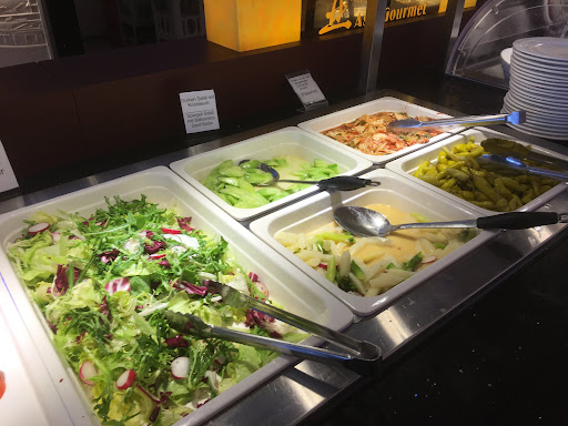 Read moreKurz und knapp, das Essen war super, egal was auf dem Teller gelandet ist, es war lecker. Für das Essen gibt es locker eine 1! Aber das war es dann auch mit der Frohlockung! Nun zu den Kritikpunkten. Die Räumlichkeiten sind aufgeräumt, geordnet verteilt und gut ums Buffet angeordnet, aber in der Masse viel zu viel! Wir waren vielleicht auch zu einer dummen Zeit dort, aber es war eine Menschenmasse anwesend, das einem nicht wohl war. Auch gerade jetzt in der Pandemie kommt für mich ein erneuter Besuch dort nicht mehr in Frage. Nächster Kritikpunkt dann, das das Personal hoffnungslos überfordert gewesen ist. Zwar waren sie immer höflich aber auch total gestresst. So wurden weder Kinder angehalten sich zu benehmen noch eingegriffen wenn sie sich am verlockenden Süßspeisen Buffet die Taschen vollgestopft haben. Sie rannten überall herum und von den Eltern weit und breit keine Spur! Im angrenzenden Raum fand dann auch noch ein Kindergeburtstag statt wo dann selbst die anwesenden Erwachsenen negativ aufgefallen sind, sei es durch ein regelrechtes Vodka Saufgelage, missachten der Maskenpflicht usw. Nein, ein absolutes No Go! Das einzige was noch positiv aufgefallen ist, war der Preis. Wir waren mit 5 Personen dort und haben knapp 120€ bezahlt. Das geht in Ordnung. Fazit: Wer Lust auf Bahnhofsatmosphäre hat und lecker Essen gehen will, ist dort gerade so um 18 Uhr gut bedient. Wer das vermeiden will, sollte deutlich später kommen. Vom Essen her macht man dort...