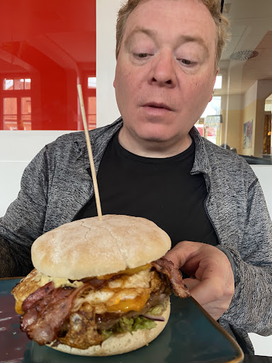 Einfach nur zu empfehlen. Egal für welchen Anlass und egal um welche Uhrzeit. Ob früh, mittags, Nachmittag, Abend oder in die Nacht hinein immer nette Leute ob in der Küche oder im Service. Man bekommt das Gefühl der Geborgenheit und der Gemütlichkeit vermittelt, man könnte da schon fast denken man wäre zuhause. Einfach nur klasse. Auch das Essen ist einsame spitze, insbesondere die burger und da sehr zu empfehlen die burger des Monats, da gibt sich der Küchen Chef rocko echt viel Mühe und steckt viel Kreativität rein. Auch bei Sonderwünsche wird Rücksicht genommen. Was ich mir wünschen würde ist wenn auch Croissant ins Sortiment aufgenommen wird und der Kaffee vollautomat in eine siebträger marschiene getauscht wird, aber da ich selber in der Gastronomie arbeite weiß ich das in so einem Betrieb es für einen an der tecke fast schon unmöglich ist alleine das alles mit der siebträger zu meistern und man dazu dann einfach ein zweiten an der tecke Braut der nur für die siebträger zuständig ist. Würde rein Platz technisch nicht funktionieren. Aber dafür würde ein guter Kaffee ausgesucht Die Ambiente ist gemütlich und passend eingerichtet. Es läuft immer gute Musik und für jede Generation ist da was dabei, auch musikwünsche werden beachtet.
