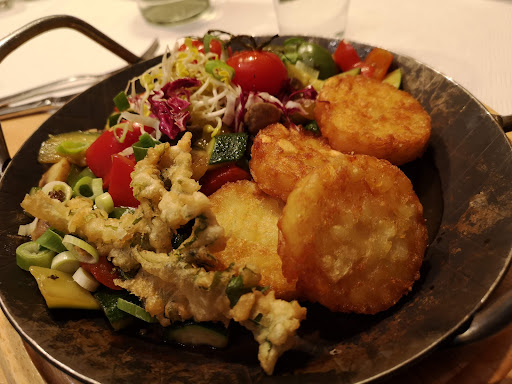 Read moreLeider der Flop von Pellworm. Hier ist die Zeit stehen geblieben. Das Ambiente ist das eines Hotels von ca. 2000. Man hat sich nicht wirklich wohl gefühlt. Der Service hingegen war spitze, sehr aufmerksam und zügig. Es gab eine Tageskarte, aber mit nur einem Gericht. Hier hätte man durchaus noch ein zweites aufnehmen oder aber eine Empfehlung der Küche hinzunehmen können. Der Salat zur Vorspeise war sehr gut durchmischt und das Dressing war lecker. Aber durch die kleine Schale konnte man das Dressing nicht durchmischen. Die Hauptgerichte waren deutlich schlechter. Die Rösti waren TK Supermarkt Qualität. Der Rest vom Gemüse hätte man auch etwas würzen können. Wintergemüse hat meistens etwas weniger Geschmack, hier braucht man mehr, um nicht nur etwas zu Kauen zu haben. Der Burger war...Essen. Alles unter dem Patty war fast tiefgefroren! Dazu war auf dem Burger eine verwässerte Cocktailsauce. Da schmecken selbst die Burger aus Pappe von diverse Fast Food Ketten besser. Selbst Ketchup ist hier die deutlich bessere Wahl. Die Kartoffel Dippers waren OK, aber hier habe ich auch nicht viel erwartet. Salzen hätte man sie...