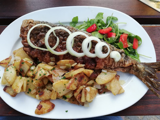 Angepriesen als Meeresfrüchte Restaurant und angeregt von den Bildern hier auf Google besuchten wir die Gaststätte.Wir saßen zur späten Abendstunde draußen da das Wetter gut war. Die Karten wurden flott ausgegeben und die bestellten Getränke waren kalt. Über den geschmack und die qualität des Weißweins lässt sich streiten.. Auf dem Tisch waren Blumen ein Windlicht (das leider nicht angezündet wurde) und ein Wernersgrünerschild..Erst dachte ich das Schild wär festgeschraubt.Aber Nein es klebte nur Bombenfest am Tisch! Und ich hing auch immer fest an klebrigen Flüssigkeiten.Hier fehlt die Sauberkeit..Mit etwas küchenrolle und spray wär das fix erledigt. Der erste Blick in die karte war ernüchternd! 1Rollmops gericht 2Backfisch gerichte und 4Schnitzelgerichte und ein paar Nudeln.