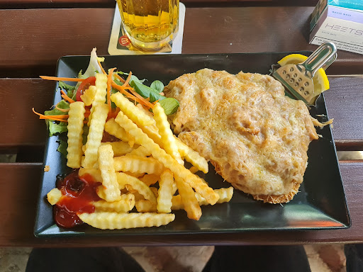 Also bestellten wir Schnitzel Champions und Letcho jeweils mit Bratkartoffeln. Sowie Würzfleisch und einen Salat.. Die Vorspeisen waren gut.wenn man aber worcester soßen wieder auf füllt sollte man auch ab und zu die verschlüsse säubern.Dieser war nämlich so vollgekleistert das der deckel fast nicht drauf ging.Leider kamen die Hauptspeisen schon obwohl noch an der heißen Vorspeise gegessen wurde.Also schnell die vorspeise rein geschoben damit das Schnitzel nicht kalt wird. Die größe vom schnitzel war okay aber leider war die Panade eine Vollkatastrophe es war wie Matschiges Mehl.die soße (die leider auch nicht selbst gemacht war und die Champions aus der dose)hat noch den rest dazu getan und alles aufgeweicht.ok dann pulen wir eben die panade ab...Bratkartoffeln waren extrem fettig und fertig. Bei so wenig Gerichten erwarte ich absolute frische und Qualität..Schade! Einen weiteren abzug gibts bei den außen Toiletten, aus dem Herrenklo kam wasser gelaufen....was verdächtig roch, ich wollte nicht durch pipi fützen laufen.Also hab ich bis zuhause ausgehalten. Wäre die Gaststube voll gewesen hätte ich es verstanden.Aber Bedingung und andere Mitarbeiter saßen selbst am tisch und genoßen den Abend (es waren noch 2Tische inklusive unserem) Auch hier fehlt die Sauberkeit.Den durchgang zu den Mülltonnen könnte man zu machen ich fand es nicht toll beim essen auf Müllkübel zu schauen.