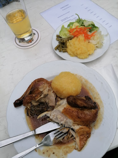 Nach dem Besuch des Kunst- und Handwerkermarktes am Muttertag wollten wir uns zur Mittagszeit stärken. Im Garten vom Fänderl fanden wir noch einen freien Tisch. Die Kellnerin wies uns gleich darauf hin, dass es mit dem Essen etwas länger dauern kann. Zur Überbrückung brachte sie uns vorab schon mal den Salat. Es ging aber dann doch recht schnell. Ich hatte das Brüstl mit Reiberknödel. So eine Kruste habe ich schon lange nicht mehr gegessen; schön kross und es knackte so richtig beim Zubeißen. Noch ein Lob an unsere Kellnerin, die trotz des ganzen Stresses trotzdem freundlich war, was man manchmal in solch einer Situation auch schon...