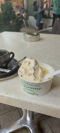 Read moreKeine Masken, gutes Eis, Zigaretten kostenlos und der Capchino riesengroß. Musik gibt's gerade keine und Sonne nur bis 16.30, dafür einen gut gelaunten Chef und eine hinreißende Ägyptern, die der ehemals italienische Eisdiele den nötigen Charme verleiht. Corona gibt's auch nicht, da muss man halt Abstriche machen, das gibt's dort...