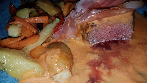 Mein Hauptgang das Rumpsteak Medium mit dem italienischen Schinken on top auf Tomatensoße mit Champions, dazu Gemüse und Rosmarinkartoffeln...ich denke allein die Bilder sagen mehr als 1000 Worte.
