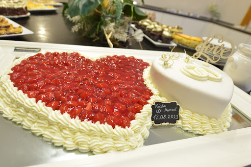 Des Weiteren hatten wir uns auch für diese Bäckerei entschieden, da uns am Tag der Bestellung ( im April) zugesichert wurde, dass die Torte 21:30 Uhr geliefert wird- wir brauchten es so spät, da unsere Hochzeitsfeier erst 17 Uhr losging und wir in unserem Feierraum keine Kühlmöglichkeit hatten. Ein Tag vor der Hochzeit bekamen wir einen Anruf, dass diese späte Uhrzeit nicht möglich wäre mit der Lieferung...nach einer nervenaufreibenden Diskussion wurde uns die Torte dann doch noch zur abgesprochenen Uhrzeit geliefert. Sowas geht gar nicht!!!