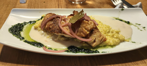 Wir waren im Dezember mit mehreren Leuten da und konnte somit verschiedene Gerichte sehen. Ich weiß nicht, wie die Preisgestaltung zustande kommt. Ich hatte ein vegetarisches Gericht bestehend aus rote Beete- und Spinatknödel. Dazu sollte es Vanillekarotten und Kürbis geben. Ich hatte vier Knödel, also jeweils zwei pro Sorte, auf dem Teller liegen. Vanillekarotten? Fehlanzeige! Kürbis? Fehlanzeige! Ersatz? Keiner vorhanden. Es wurde mit Champignonsoße serviert, die nicht auf der Karte stand. Dafür, dass die Beilage ohne Ankündigung gefehlt haben, durfte ich um die 18 € bezahlen. Weder rote Beete, noch Spinat sind so teuer, dass dieser Preis angemessen wäre. Zum Vergleich hatte der Tischnachbar Rindsrouladen mit Knödel und Rotkohl bestellt. Auf dem Teller waren 2 Rouladen!!!, 3 Knödel!!! und Rotkohl zu finden. Und das Ganze war günstiger, als das vegetarische Gericht mit den vier Knödeln. Der Service war auch eher mäßig. Einmal und nie wieder. Eine Empfehlung kann ich bei der Preisgestaltung auch nicht weitergeben. Schade. Hatte mehr erwartet für den Preis