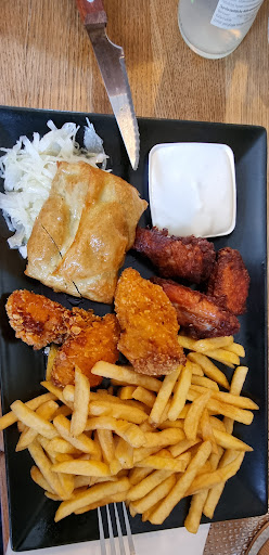 Chicken Wings gekauft und zu dunkel fritiert. Beilagensalat mit 4,80€ deutlich zu teuer, Rohkostsalate sowie das Dressing sicher gekauft. Hähnchenspieße (Chickn Doublestick) auch grenzwertig lange fritiert. Die Maultasche (sicher gekauft) auch fritiert echt jetzt? Ein Hähnchen "Sweet Chili Style" mit einem Klecks süß sauer Soße zu übergießen ist schon etwas witzig. Pommes nix besonders und auch zu lange fritiert, kein witziges Gewürz nix. Chicken Crossoes um 17 Uhr aus, ja kann passieren aber wenn wen man gefühlt nur 5 Produkte hat und alle tiefgekühlt sind, sollte es das nicht!