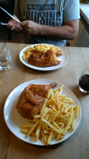Preis-Leistungs-Verhältnis: 12,50 für mein Hähnchen mit Pommes + 1,20€ für den Knobi Dip und 3,90€ für 0,5l Mineralwasser. Aus meiner Sicht absolut fair für die gebotene Qualität! - 5/5