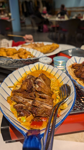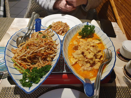 Read moreJeden ersten Mittwoch im Monat gibt es ein Abendbuffet. Blick auf das Buffet: zwei Suppen, Fingerfood chinesische Herbstrollen, Currytaschen, gebackener Fisch, Geflügel und Schwein. Dazu acht asiatische Speisen als Hauptgang. Das Buffet war um 20:00 schon ziemlich geräubert. Es wurden aber alle Speisen nochmals nachgelegt und aufgefüllt. Geschmacklich waren alle getesteten Gerichte sehr lecker ausgeführt. Die thailändischen Speisen überzeugten durch eine angenehme Schärfe. Die Kennzeichnung der einzelnen Speisen auf dem Buffet war perfekt.
