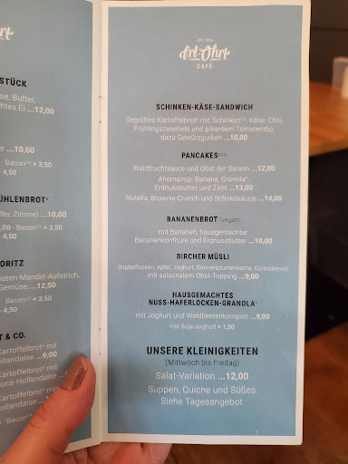 Das Café befindet sich in einem klassizistischen Altbau, der in einem Wohngebiet liegt. Entsprechend gestaltet sich die Parkplatzsuche. Der Weg zur Reservierung ist holprig: Sie ist ausschließlich telefonisch möglich, diese Information findet sich jedoch aktuell ausschließlich auf Instagram - oder am Telefon, wenn der Gast nach einer Woche fragt, was aus der Reservierungsanfrage per E-Mail geworden ist. Die warme Küche schließt um 14 Uhr, und diese Information findet sich nicht bei den Gerichten, sondern ausschließlich im Kleingedruckten der Karte. Kann frau so machen, aber so saßen wir unlängst hungrig und erwartungsvoll an einem Samstagnachmittag im Lokal, und erfuhren erst bei der Bestellung, dass die in der Karte so lecker betexteten warmen Gerichte gar nicht verfügbar waren.