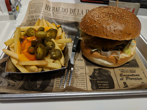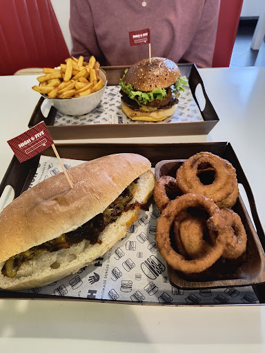 Read moreDer mit Abstand schlechteste Burger/Laden... Trotz erhaltener Reservierungsbestätigung hat die Bedienung darauf bestanden die Bestätigung zu sehen, was an sich legitim ist. Darauf zu beharren, dass es nicht möglich sein kann und uns abwimmeln zu wollen steht fern ab vom Kundenservice. Nach einer Diskussion wurden wir schlussendlich an ein Tisch gesetzt. Da kam erneut die Bedienung und zeigte das keine Reservierung vorliegt, was sich nun in Richtung lächerlich erweist. Nach einer weiteren halben Stunde konnten wir dann eine Bestellung aufgeben. Als die Burger kamen, sahen die optisch einigermaßen bemitleidenswert aus. Die Brötchen waren verbrannt, und bei einem bestellten Cheesburger den Käse suchen zu müssen ist meiner Meinung nach schon traurig. Der Burger triefte vor fett und war geschmacksneutral und fade. Der Einzige Geschmack brachten die 2 Zwiebelringe. Gehen wir weiter zu den Pommes. Bestellt wurden die Ultimate French Fries. Hier ergab sich ein weiterer trauriger Anblick. Abgesehen davon, dass die Pommes versalzen waren, wurden auf den Pommes Zwiebel und zwei Baconstreifen gelegt. Auch hier war man vergeblich auf der Suche nach dem Käse (An der Stelle soll gesagt sein, dass der Laden mit Orginal Cheddar Käse wirbt). Die Getränke wurden recht zügig mit einem Strohhalm serviert. Aus hygienischer Sicht, unvorteilhaft da die Strohalme von der Bedienung oder der Servicekraft angefasst worden sind und in die Flasche/Glas gesteckt wurden. Die Gleiche Bedienung hat davor den Tisch abgewischt und sich im Anschluss nicht die Händer gereinigt. Während dem Essen kam die Bedienung erneut und hat uns zwei feuchte Tücher auf den Tisch geschmissen...Wohlfühlfaktor nicht gegeben. Fazit: Ein zweites Mal werden wir diesen Laden nicht betreten. Da sowohl das Essen abgrundtief schlecht war als auch das Personal unfreundlich, arrogant und...