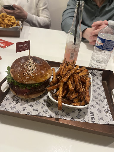 leider muss ich sagen, dass die Burger mich nicht überzeugt haben. Aufgrund der vielen positiven Rezensionen habe ich meine Verwandten überzeugt bei High Five essen zu gehen. Ich musste feststellen, dass die Burger nicht so gut sind wie die Rezensionen vermuten lassen. Ich hatte einmal den Bom Chicken Wow Wow und einmal den Chili Chees Burger. Auf der Webseite stand, dass sie die Hähnchenbrust selbst panieren. Ich bekam leider ein Tiefkühlhähnchen was zusammengepresst und perfekt rund war. Von Hähnchen hab ich nichts geschmeckt. Das die Bedienung nicht einmal ein Hinweis gegeben hat, das aktuell das Hähnchen nicht selbstgemacht wird, ist ein NoGo. Die Ausrede war, dass sie ein Café neu integriert haben und der Chef aktuell keine Zeit hat die Hähnchen selbst zu machen. Außerdem hat noch keiner was dazu gesagt, dass es nicht selbst gemacht ist. Aber trotzdem dem wird der Preis von 12,50€ verlangt. Das Brötchen ist leider kein Briochebun. Es ist zu übermächtig. Ich habe mehr Brötchen geschmeckt als Fleisch oder Belag. Es war auch insgesamt von der Zusammenstellung her keine Harmonie vorhanden. Beim Chili Burger war das Fleisch immerhin selbst gemacht. Allerdings waren das keine 170-180g wie die Bedienung es gesagt hat. Ich mache selbst leidenschaftlich gerne Burger und weiß wie groß und dick ein 200g, 180g, 160g... Burger sein muss. Ich hatte den einfachen Chili Burger und das war eben ein Patty zu wenig. Das gleiche Problem wie beim Chicken Burger, das Brötchen war zu sehr im Vordergrund. Es ist einfach zu schwer und mächtig und drängt sich in den Vordergrund. Es hat keinen spaß gemacht den Burger zu essen. Preis/Leistung stimmt hier leider nicht. Das Ambiente war schön. Ich werde nicht mehr das High Five besuchen. Fotos habe ich leider keine gemacht, weil mich der Anblick vom Chicken Burger irritiert hat. Ich hatte ja etwas selbst...