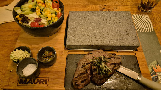Man wird bereits am Eingang sehr herzlich empfangen. Sollte es ein technisches Problem bei der Reservierung geben, wie in unserem Fall, kümmert sich der Chef persönlich drum. Einen so aufmerksamen und bemühten Service habe ich noch nie erlebt. Wir waren wegen dem Hot Stone Steak dort und wurden sehr positiv überrascht. In der Umgebung gibt es bereits einige Steakhäuser mit solch einem Konzept. Dennoch hat das Steak im Mauritius von der Fleischqualität her, vom Geschmack her und in Kombination mit den Soßen und den Beilagen so überzeugt, dass wir es bevorzugen und definitiv weiterempfehlen würden. Abgesehen vom guten Essen, bin ich sehr glücklich darüber, dass es in Pforzheim endlich wieder eine Location gibt, in der man auch mal gemütlich was trinken kann.