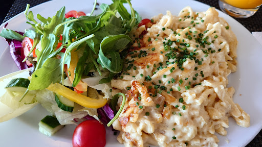 War mit meiner Frau da. Sie hatte in der Klinik einen Termin. Wir haben dort gegessen und etwas getrunken. Danach ist meine Frau zu ihrem Termin. Ich blieb sitzen und hatte unseren einjährigen Hund dabei. Während des Essen und auch danach war die kleine ruhig, aber nach über 2 Stunden warten fing sie an wenig unruhig zu werden und fiepste ein paar mal...... meine Tischnachbarn haben sich sogar mit ihr beschäftigt. Auf einmal kam der Kellner und fragte mich ob es nicht besser wäre wenn ich mit dem Hund mal spazieren gehen würde. Er hat mich mehr oder weniger nach über 2,5 Stunden rausgeschmissen. Er versuchte noch zu erklären das sein Chef das wollte. Der Chef hatte keine Eier in der Hose selber raus zu kommen und schickt seine Angestellten. Feiger typ. Der Laden sieht mich nie wieder. Wie bereits hier geschrieben besser Mc Donalds tüte und den Dreck auf den...