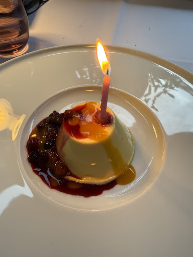 Ich hatte einen fabelhaften dining Abend. Ich mochte dieses gedeckte, Vernissage hafte Ambiente, die intimen Lampen, die texturen, ich kann nur sagen,, eine hoch intelligente und empathische crew, die flirt und Empfehlung wohl dosierte und Ausflüge jenseits der Weinkarte zum Abenteuer machte, die Küche, indeed, hat alle munderlebnisse und texturen im Griff und macht Spaß damit, es ist Taktilfun, den kleinen Überraschungen nachzugehen, die immer das hauptaroma flanieren, es ist farblich und auch im Angebot sehr sweet, definitiv, und eine der fairsten Weinkarten ever. Allein die bisque als Küchengruss mit pulpo und Pinienkernen verdient ein Solo, die Balance der Konsistenz von Fois Gras und jakobsmuschel ist milimetergenau, und das Bekenntnis zu grünem Chili in der Suppe (unbedingt mit Sherry Portwein) oder das fast tempurahaft frittierten Zucchini zum loup und die bissfesten fregola, wirklich wirklich gut. .