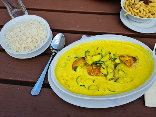 Read moreErstmals vor Ort gewesen. Leider waren wir nicht zufrieden. Bestellt wurden Suppen als Vorspeise und zwei Hauptgerichte. Getränke kamen zügig an den Tisch. Nach über einer Stunde habe ich nach der Vorspeise gefragt, die wir dann wenig später erhielt und 20 Minuten später kamen die Hauptspeisen. Über 60 Minuten auf die Suppen zu warten ist in keinem Restaurant vertretbar. Somit kam die Hauptspeise in der Summe nach über 90 Minuten nach dem wir bestellt haben. In der Zeit bis wir unsere Vorspeise erhalten haben erfolgten mehrere Fahrten des Liefedienstes. Da dachte ich mir, dass ich schneller mein Essen ehalte würde, wenn ich telefonisch bestellt hätte. Meine Kokos-Rahm Suppe war geschmacklich in Ordnung. Die Brotcroutons in der Suppe meiner Frau war zu fettig und störend. Das Lamm-Biryani war gut gewürzt jedoch zu fettig, welches mich am selben Abend daheim noch gestört hat. Die Käse-Spätzle meiner Frau entsprach nicht den Erwartungen einer schwäbischen Küche. In der Summe: freundliches Personal, lange Wartezeit und geschmacklich nicht...