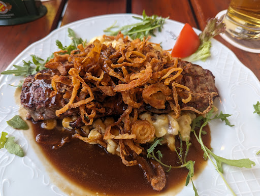 Read moreWir waren hier vor rund einer Woche zu viert zum Abendessen. Personal ist sehr freundlich, wir hatten keine Reservierung und doch noch einen Tisch im hinteren Bereich (nahe Kinderecke) bekommen. Ich persönlich fand das Ambiente im hinteren Bereich weniger ansprechend. Der Gastraum wirkt dort jedenfalls nicht sehr gemütlich. Aber vielleicht ist das auch nur mein Eindruck. Ich hatte die Filetpfanne, mit der ich nicht wirklich zufrieden war, das Schweinefilet war relativ geschmacksneutral bzw. hat sogar schon den Geschmack der Pfanne angenommen, die dazugehörigen Kässpatzen waren auch nicht so lecker, der Käse hatte irgendwie einen merkwürdigen Geschmack und eine komische Konsistenz. Zudem war die Filetpfanne nur noch Lauwarm, obwohl in einer Gusseisenpfanne serviert. Die essen meiner Begleiter waren aber soweit gut. Vielleicht gab es an dem Tag mit meinem Essen einfach ein Unglück, ich weiß es nicht. Der Service war jedenfalls freundlich und zuvorkommend, da gibt’s nichts zu meckern. Dennoch bin ich einem weiteren Besuch gegenüber erstmal skeptisch, aber vielleicht gibt’s ja nochmal eine neue Chance? Die anderen Bewertungen sehen ja soweit...
