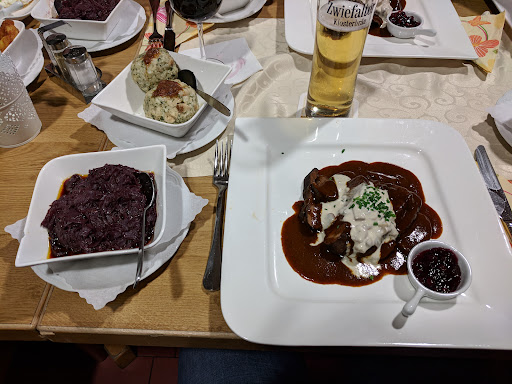 Nun, wir haben es leider nicht bis ins Innere geschafft... Wir studierten die Speisekarte nach unserem Spaziergang mit dem Hund und es gab Fleisch, anderes Fleisch, noch mehr Fleisch, Leber, Schnitzel, Schnitzel XXL und Schnitzelplatte... Offenbar scheint sich die Kulinarik des/der Verantwortlichen in diesem Etablissement auf Fleisch zu konzentrieren und zu reduzieren. Auch die Herkunft des Fleisches hätte interessiert, leider keine Angabe zu finden. Im Zuge von Klimawandel, vegetarischen Alternativen zum Fleisch oder einfach ein gutes Essen ohne solches (Mit kann jeder, aber ohne zeichnet den guten Koch aus), wird hier ganz offenbar altmodisch hinterwäldlerisch übermäßiger Fleischkonsum hoch gehalten. Ein Essen ohne Fleisch ist offenbar keines und der Veggieburger bezeichnenderweise ganz am Schluss der Fleischaufzählungen auf der Speisekarte, der reißt es dann auch nicht mehr raus. Zumal jeder solche Pattys über hat, weil es die halt überall und immer gibt... Schade. Wir haben uns zu Hause dann eine wunderbare Pasta gekocht, ohne Fleisch und gespart haben wir noch obendrein... Alles gut. Kleiner Hinweis am Rande: Man sollte vielleicht einmal umdenken, bevor andere einem...