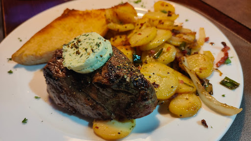 Read moreIch war heute zum ersten Mal mit meinem besten Freund hier - aber sicher nicht zum letzten. Wir sind zur "Happy hour" gekommen, in der die Steaks zu reduziertem Preis angeboten werden. Ich hatte das 250g Riby-eye medium rare bestellt, mein bester Freund nahm das Huftsteak. Der Salat vorneweg schon eine ordentliche Portion mit leckerem Dijonsenf-Dressing. Als die Steaks kamen hörte ich hinter mir ein zischendes Bruzeln... das Steak wurde auf einer heissen Gusseisenplatte serviert, das wiederum auf einem Holzträger ruhte. Optisch und akkustisch schon mal ein Volltreffer. Das Messer - einziger Kritikpunkt - war etwas stumpf, aber das Fleisch war SENSATIONELL! Eins der besten Rib-eye Steaks ever. Baked potatoe samt sour cream sehr lecker, ebenso das Röstbrot. Wirklich rundum gelungen, auch dank des netten Service und das ganze dann für 21,90€. WOW! TOP!