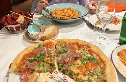 Read moreWir waren heute mit 10 Leuten dort essen und waren wenig begeistert. Die Begrüßung ließ zu wünschen übrig, danach ging es leider nur noch weiter Berg ab. Bis die ersten Bestellungen aufgenommen wurden, auch Getränke, dauerte es. Zur Vorspeise hatten wir Tomatencremesuppe, die zwar frisch gekocht wurde, jedoch wenig Geschmack hatte. Der Ziegenkäse gebacken war lecker, es fehlte aber an Honig und wir haben schon mal besseren gegessen. Die Pizza war in Ordnung, der Teig war zu fest und sie hatten keine Peperoni da, was ich für einen Italiener als selbstverständlich ansehe. Auch waren die Messer nicht scharf genug, sodass man sich beim schneiden abquälte. Die Spaghetti Bolognese waren einwandfrei, die mit Meeresfrüchten leider nicht, denn es waren Muscheln mit Schale, auch zerbrochene, im Gericht. Andere hatten Tortellini, die nach zwei Stunden Öffnungszeit schon fast leer waren und nun anstatt von 2 Portionen, nur 2 halbe und 2 Salate gebracht wurden. Dies machte nicht satt und war sehr enttäuschend. Der Hirsch in Rotweinsauce war gut. Zum Dessert gab es Tiramisu, dass matschig war und nur nach Kakao schmeckte. Die Crème brûlée war nicht kross flambiert und ehrlich gesagt schmeckt die von Dr. Oetker besser. Zur Bedienung lässt sich sagen, dass Bestellungen vergessen wurden und es zu lange dauerte, bis man diese bekam. Auch wurde nur teilweise bis gar nicht gefragt, ob es schmeckt oder geschmeckt hat und ob man noch ein Getränk möchte. Die Sanitäranlangen waren für ältere Menschen schwer zugänglich und für Rollstuhlfahrer nicht benutzbar. Dies liegt daran, dass sie im Keller liegen und ausschließlich eine Wendeltreppe hinunter führt. Zusammenfassend lässt sich nur sagen, dass dieses Restaurant uns sehr enttäuscht hat. Einmal...